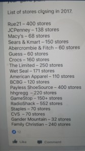 20 Troubled Retailers Besides J.C. Penney That Are Shuttering Stores April 29, 2017 ~ planbincomeproducers J.C. Penney isn’t the only big retailer having trouble in the age of Amazon. Here are several other retailers continuing attempts to rightsize their store fleet amid the shift to digital shopping or other external pressures. https://www.thestreet.com/video/14049100/12-troubled-retailers-besides-j-c-penny-that-are-shuttering-stores.html?puc=yahoov&cm_ven=YAHOOV&yptr=yahoo Share this: Share on X (Opens in new window) X Share on Facebook (Opens in new window) Facebook Like Loading... Related